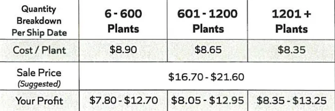 Deadline for Orders: Last week of March. (Cutoff for order additions is 2 weeks prior to scheduled delivery week.)